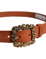 Dolce & Gabbana Brown Leather Gold Metal Baroque Buckle Belt