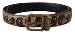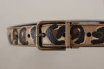 Dolce & Gabbana Brown Leather Leopard Print Bronze Metal Buckle Belt