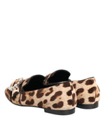 Dolce & Gabbana Brown Leopard Print Crystals Loafers Flats Shoes