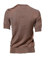 Dolce & Gabbana Brown Lily Embellished Round Neck Blouse Top