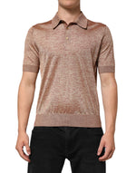 Dolce & Gabbana Brown Silk Textured Short Sleeve Polo T-shirt