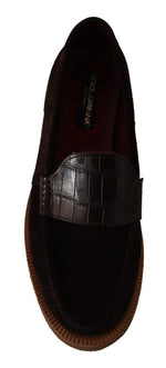 Dolce & Gabbana Brown Suede Leather Slip On Flats Moccasin Shoes