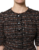Dolce & Gabbana Brown Tweed Short Sleeves A-line Mini Dress