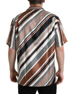 Dolce & Gabbana Brown White Silk Striped Short Sleeve Shirt