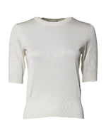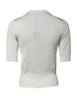 Dolce & Gabbana Cream Short Sleeve Silk Round Neck Blouse Top