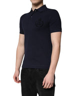 Dolce & Gabbana Dark Blue Cotton Crown Collared Polo T-shirt