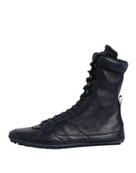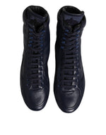 Dolce & Gabbana Dark Blue Leather KING High Top Sneakers Shoes
