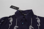 Dolce & Gabbana Dark Blue Sea Horse Collared Polo T-shirt