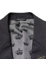 Dolce & Gabbana Dark Gray Bee Embroidery Wool Coat Blazer