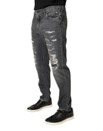 Dolce & Gabbana Dark Gray Tattered Cotton Loose Denim Jeans