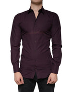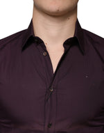 Dolce & Gabbana Dark Violet Cotton Dress GOLD Men Formal Shirt