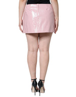 Dolce & Gabbana Glossy Pink Cotton High Waist Mini Skirt
