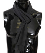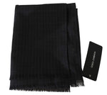 Dolce & Gabbana Gray 100% Wool Striped Pattern Wrap Scarf
