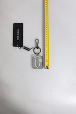 Dolce & Gabbana Gray Black DG Rubber Logo Silver Men's Keychain Keyring