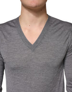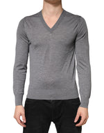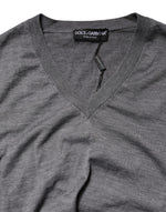 Dolce & Gabbana Gray Cashmere V-Neck Men Pullover Sweater