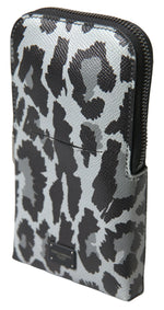 Dolce & Gabbana Gray Leopard Leather Men Purse Crossbody Sling Phone Bag