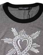 Dolce & Gabbana Gray Sacred Heart Cotton Crew Neck T-shirt