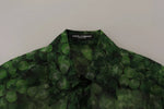 Dolce & Gabbana Green Clover Print Long Sleeves Collared Top Blouse
