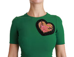 Dolce & Gabbana Green Heart Patch Mermaid Midi Viscose Dress