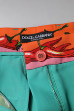Dolce & Gabbana Green Silk Printed Straight Pants