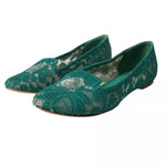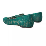 Dolce & Gabbana Green Taormina Lace Slip On Flats Shoes
