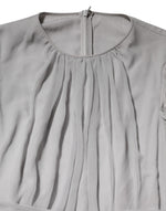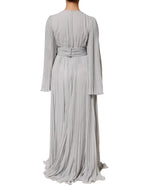 Dolce & Gabbana Grey Pleated Maxi Long Sleeve Silk Blend Gown Dress