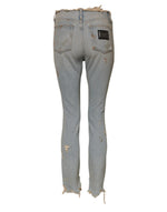 Gorgeous brand new, 100% Authentic Dolce & Gabbana skinny tattered high waist denim jeans with logo plaque.