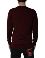 Dolce & Gabbana Maroon Cashmere V-neck Men Pullover Sweater