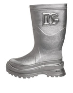 Dolce & Gabbana Metallic Silver Pull On Rain Boots Shoes