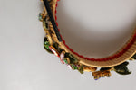Dolce & Gabbana Multicolor Crystal Floral Gold Green Velvet Crown Headband