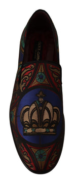 Dolce & Gabbana Multicolor Jacquard Crown Slippers Loafers Shoes