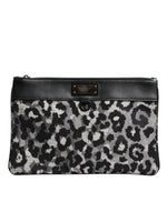 Dolce & Gabbana Multicolor Leopard Jacquard Logo Plaque Men Pouch Bag