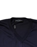 Dolce & Gabbana Navy Blue Silk V-neck Pullover Sweater