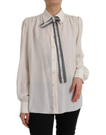 Dolce & Gabbana Off White Long Sleeve Button Down Blouse Top
