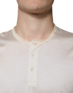 Dolce & Gabbana Off White Silk Henley Short Sleeves T-Shirt