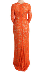 Dolce & Gabbana Orange Floral Ricamo Sheath Long Dress