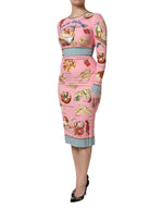 Dolce & Gabbana Pink Pastry Print Bodycon Sheath Midi Dress