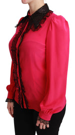Dolce & Gabbana Pink Silk Black Sequin Lace Shirt Blouse