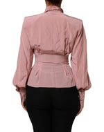 Dolce & Gabbana Pink Silk Collared Long Sleeves Blouse Top