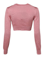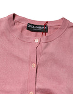 Dolce & Gabbana Pink Silk Cropped Crew Neck Cardigan Sweater