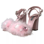 Dolce & Gabbana Pink Turkey Feather Crystal Sandals Shoes