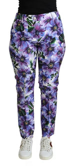 Dolce & Gabbana Purple Floral Print Tapered Cotton Pants