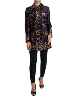 Dolce & Gabbana Purple Lamé Jacquard Tiger Print Coat Jacket