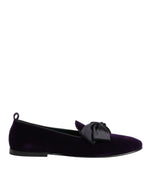 Dolce & Gabbana Purple Suede Cotton Bow Slip On Loafers Shoes