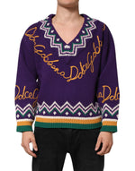 Dolce & Gabbana Purple Wool DG Logo Men Knit Pullover Sweater