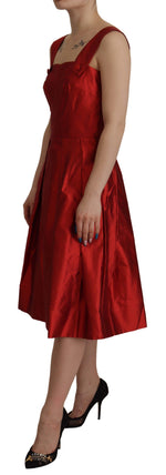 Dolce & Gabbana Red A-line Pleated Satin Silk Dress