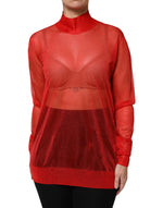 Dolce & Gabbana Red Tulle Turtleneck Long Sleeve Blouse Top