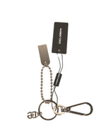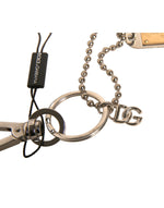 Dolce & Gabbana Silver Brass Chain Beaded Logo Plaque Keychain Keyring