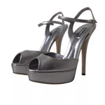 Dolce & Gabbana Silver Leather Platform Heels Sandals Shoes