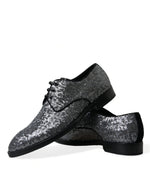 Dolce & Gabbana Silver Sequined Lace Up Men Derby Dress Shoes